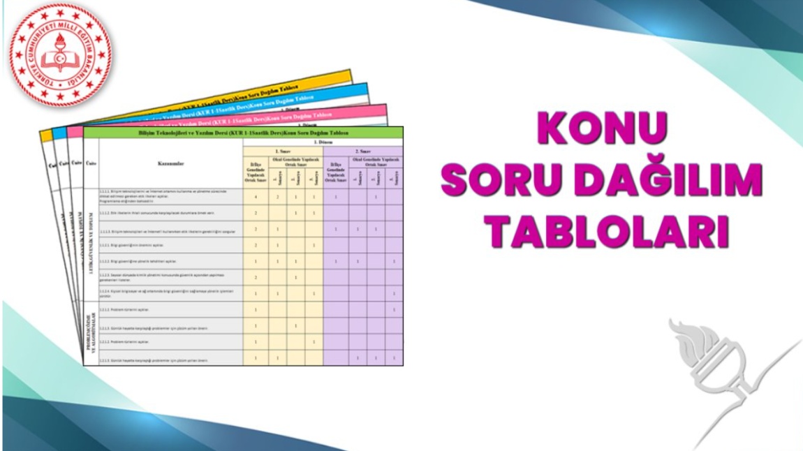 2025-2026 Yılı 1. Dönem Konu Soru Dağılım Tabloları